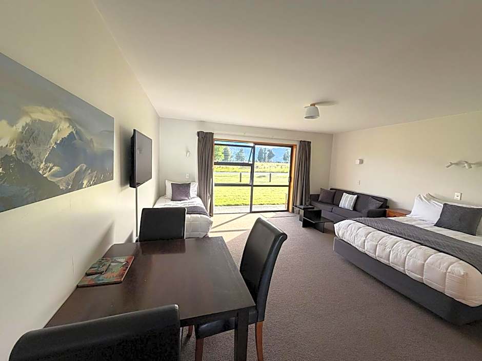 This executive studio features a glass tiled shower and floor and offers great views of Aoraki/Mt Cook and Mt Tasman. It includes free WiFi, cooking facilities and a flat-screen TV. There is 1 queen bed and 1 single bed.